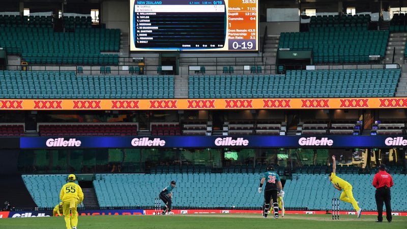 Australia and New Zealand played the first international game behind closed doors at the Sydney Cricket Ground. The players chose not to shake hands and the boundaries flying to the stands had outfielders jumping the gallery to fetch the ball back.