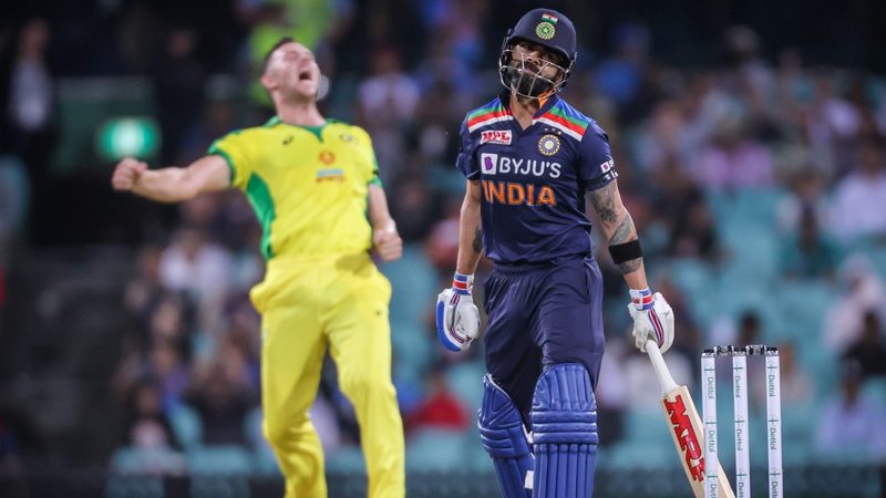 Australia thrashed India by 66 runs in the first ODI owing to centuries from skipper Aaron Finch and Steve Smith, who was adjudged man of the match, and a fiery spell of fast bowling from Josh Hazlewood.