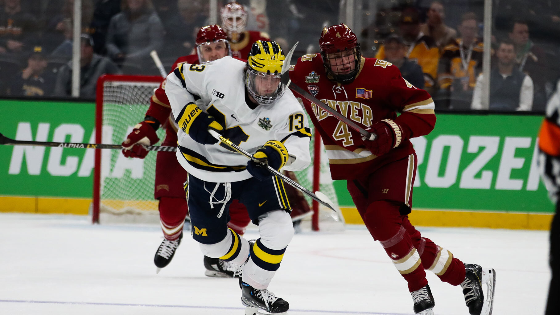 Denver and Michigan will need overtime in this first Frozen Four semifinal.