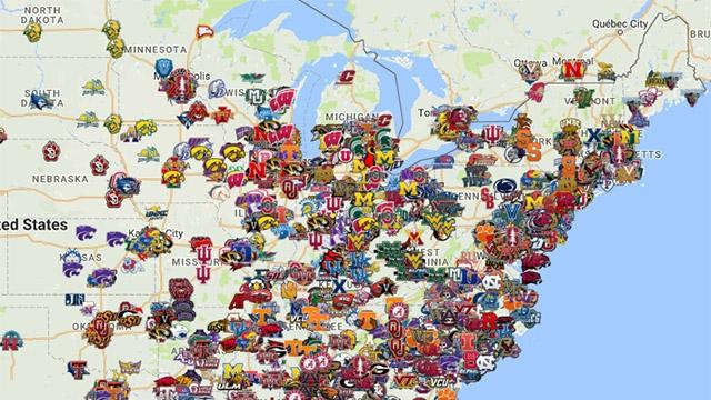 Here is what the full college basketball player map looks like – as you can see, the midwest and eastern regions of the country are dominant. If you scroll in either direction, you can venture outside of the United States: