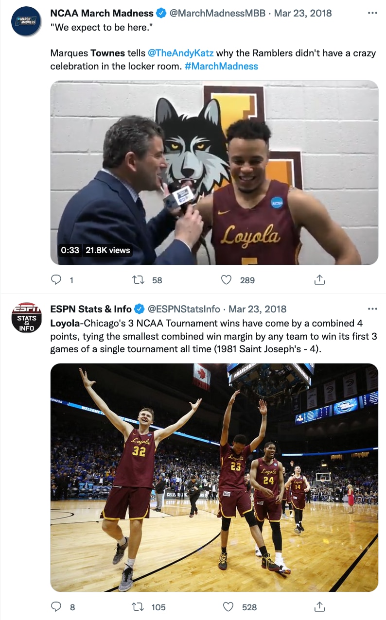 One at a time, they held and kissed the trophy while the other players picked up handfuls of confetti that had fallen and threw it in the air to let it slowly flutter to the ground once again. Because while they’ve gone from the Missouri Valley Conference champs to arguably the biggest story in sports in a matter of two weeks, the Ramblers, just like anyone else, can’t pass up the chance to share their latest achievement on social media.