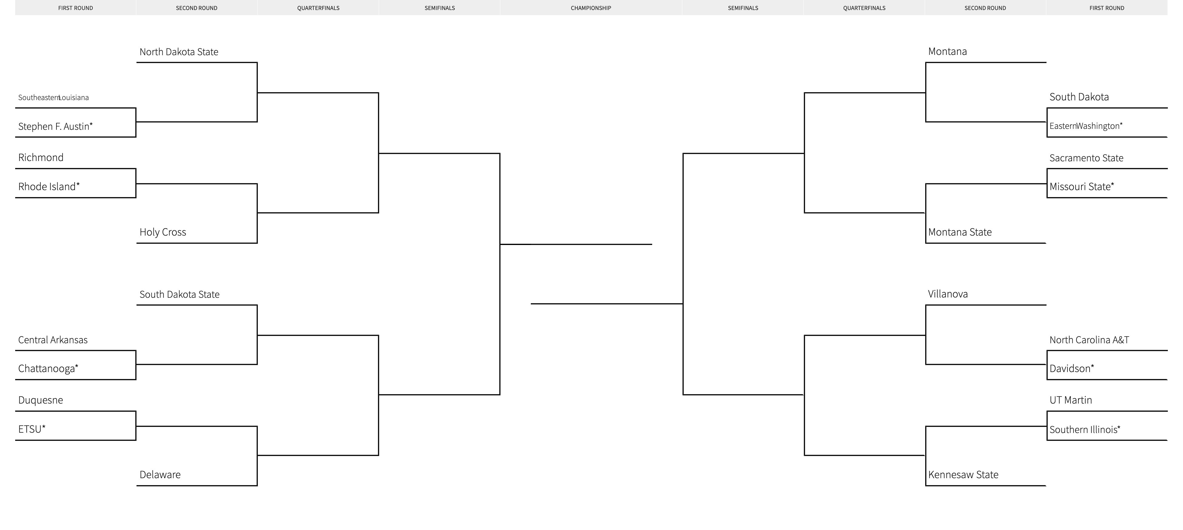 | Southeastern Louisiana at Stephen F. Austin | No. 1 North Dakota State |