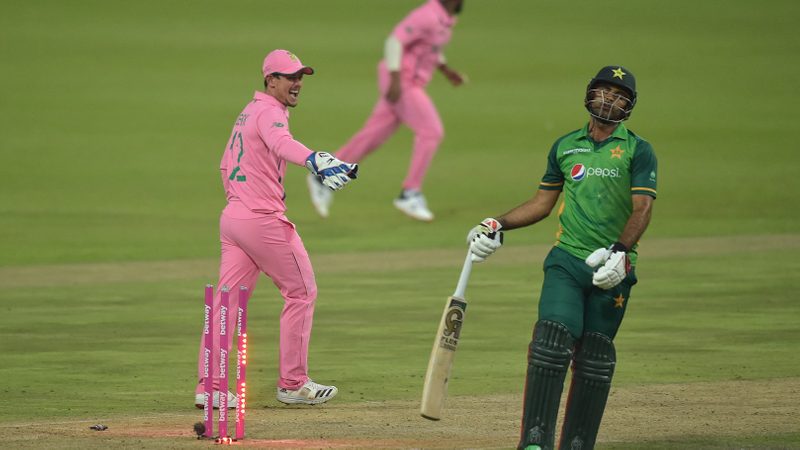 Spotting an opportunity for a run-out, South Africa wicket-keeper Quinton de Kock seemingly signalled Aiden Markram to throw at the non-striker’s end even though the ball was already thrown. It convinced Zaman that he was safe at his end.