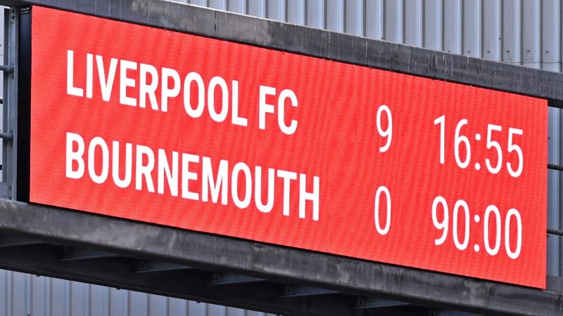 During their 2022-23 league outing against Bournemouth at Anfield, the Reds secured a 9-0 win, thanks to braces from Roberto Firmino and Luis Diaz, Harvey Elliott, Trent Alexander-Arnold, Virgil van Dijk, Fabio Carvalho and an own goal from Bournemouth’s Chris Mepham.