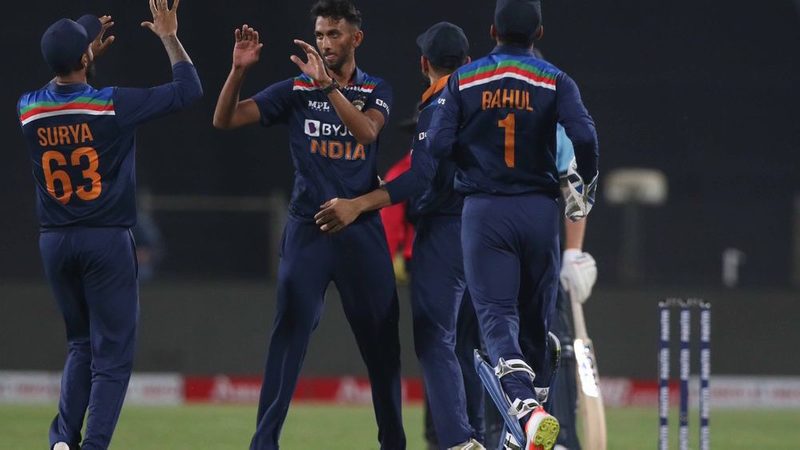 The Karnataka fast bowler became the first Indian bowler to pick more than three wickets on ODI debut as he ended with figures of 4/54 in Pune. Prasidh scalped Jason Roy, Ben Stokes, Sam Billings and wrapped up the innings by dismissing Tom Curran.