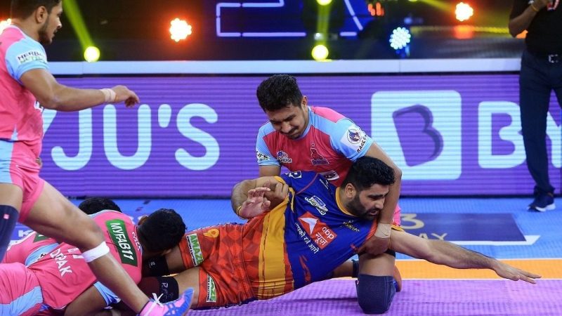 Sandeep Dhull’s tackle on Surender Gill helped Jaipur level the scores in the dying minutes. But Pardeep Narwal picked up an important raid point in a Do-or-Die situation to ease the pressure on Yoddha. Nitesh Kumar then successfully tackled Deepak Hooda in the final minute, to open up a lead.