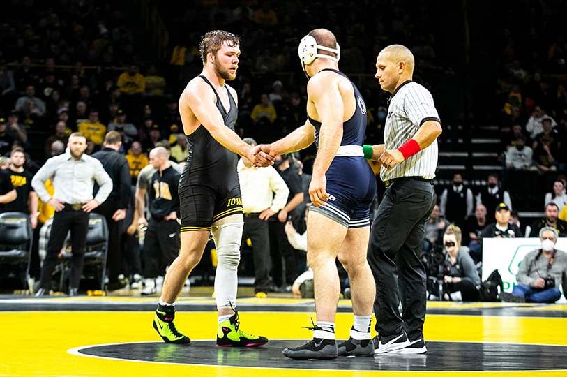Iowa and Penn State will see each other again at the Big Ten tournament and the NCAA championships, but, as it stands now, the Nittany Lions remain No. 1, and head coach Cael Sanderson’s squad is on top again.