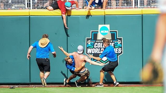 Why we love it: Oregon State just wouldn't let its time in Omaha come to an end. Game 2 of the finals is sure to be remembered for a while in college baseball history, and this photo captures that historic game. Why we love it: Often in sports, the victories come along with the pain of a loss. This photo captures a tender moment with Gators head coach Kevin O'Sullivan and his children, who consoled him after the loss to Arkansas which eiminated them from Omaha. Florida entered the College World Series as the defending champs, and many thought they could maybe do it again. Why we love it: Arkansas was a team riding high throughout the College World Series. The Razorbacks were 3-0 entering the finals. Despite the tough loss in the finals, we can't forget about Arkansas' impressive run in Omaha this year. This photo of Carson Shaddy and Jax Biggers jumping for joy proves just that. Why we love it: Well rain was a thing in Omaha this year. We had the finals pushed back a day due to weather, and one game even had a four-hour delay. We know the busiest person in Omaha this year was meteorologist. And you have to show some love to the grounds crew for all their hard work. Why we love it: This is proof that baseball in a contact sport. We appreciate this awesome action shot as a reminder of the impressive quick play we saw in the College World Series. In this shot, Gators shortstop Deacon Liput takes a hard dive to steal second base, sedning Texas Tech's Michael Davis flyting trying to make a play. Why we love it: Although it may look easy, catching a fly ball takes skill. On this particular play, two Texas players, Mason hibbeler and Tate Shaw, each attempted to make a play. Although the pair got quite close to each other, the play was made, even if it wasn't the prettiest. Why we love it: No explanation needed. Why we love it: A chance to play in Omaha is not something that comes every year. The emotion of being eliminated is very raw in this photo above. For Texas Tech, this was its third College World Series appearance in five years. Why we love it: Benny Beaver, Oregon State's mascot, somehow found his way to the top of the iconic dog pile after the final out. This beaver got hops. Why we love it: This one captures the beauty of college baseball — and the magic that is Omaha.Can't wait for the 2019 College World Series? Us either. Check out the dates here.