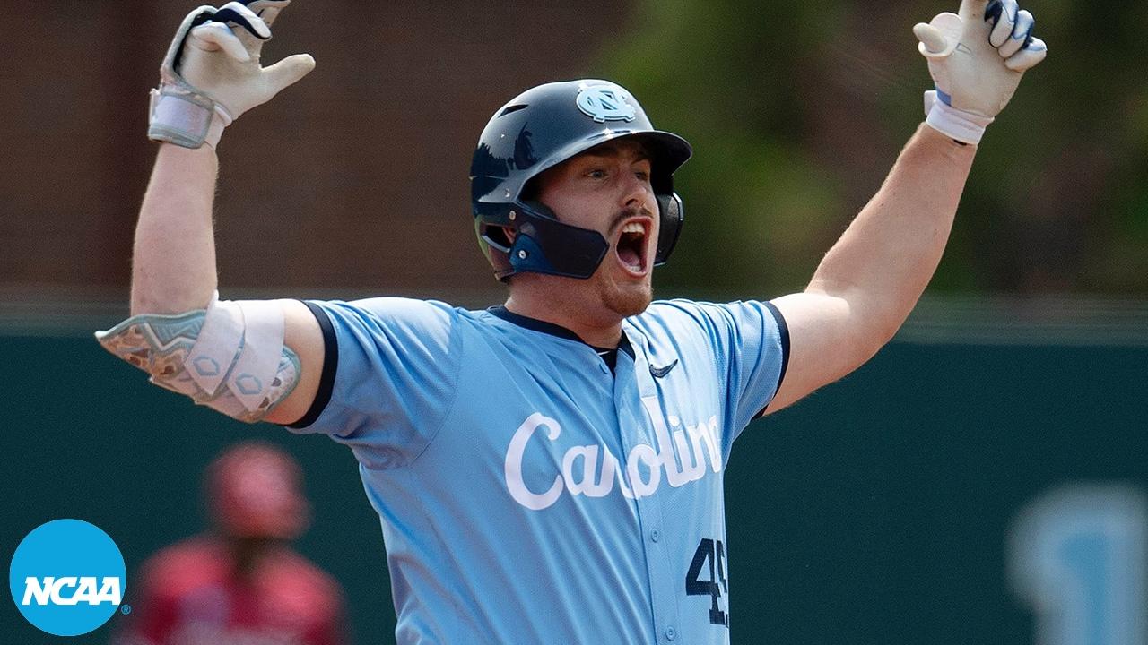 North Carolina is in the third spot. The Tar Heels did lose a game to Oklahoma, but they definitely had a tough regional, and I think the Tar Heels are looking really good right now. UNC won by 10 runs in Game 2 of the regional finals. Gavin Gallaher was automatic all weekend, hitting over .720 with three bombs, and Jake Knapp sure looked like ACC pitcher of the year — he didn't give up a run in eight innings pitched.