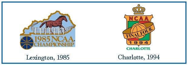 But the 1985 logo is clearly the star, possibly the best Final Four logo the NCAA has ever produced. Combining the baby blue (Carolina blue?) with the dijon mustard state outline and font gives the whole design a distinguished look, and using a horse as the visual centerpiece is a no-brain victory. It's Kentucky to a tee, and it's a perfect logo.