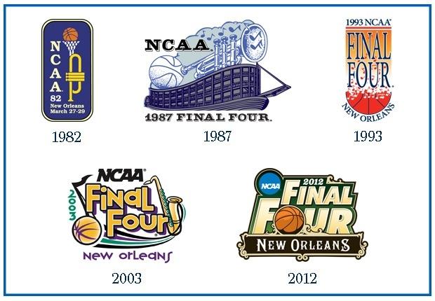 It's no surprise that New Orleans inspired some of the best Final Four logos ever. The glorious 1982 design in the upper lefthand corner is a classic-looking logo: the brass of the trumpet leading into a basketball hoop, the stacked "NCAA" letters lend it an exta level of sophistication, and you can't beat the almost purplish-navy backdrop.