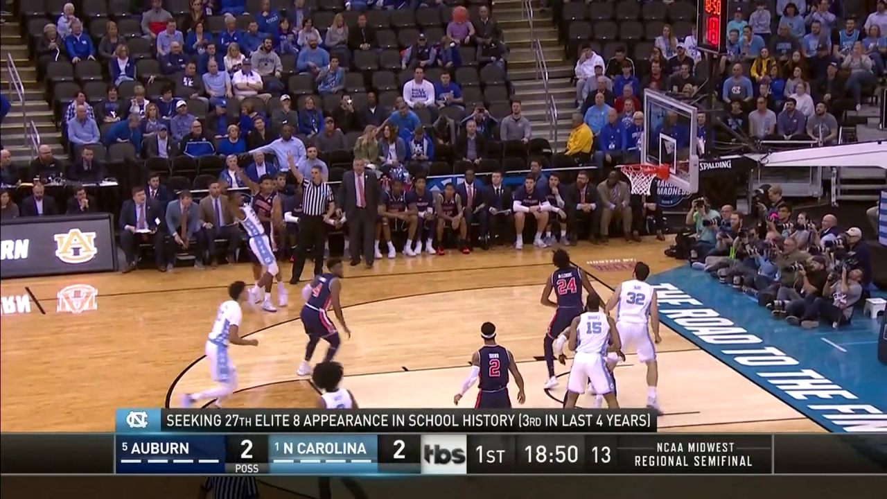 The Tar Heels had a five-point lead with about three minutes to play in the first half, but Auburn cruised into halftime on a 6-0 run. From there, the Tigers dominated the second half, taking a 19-point lead at one time.