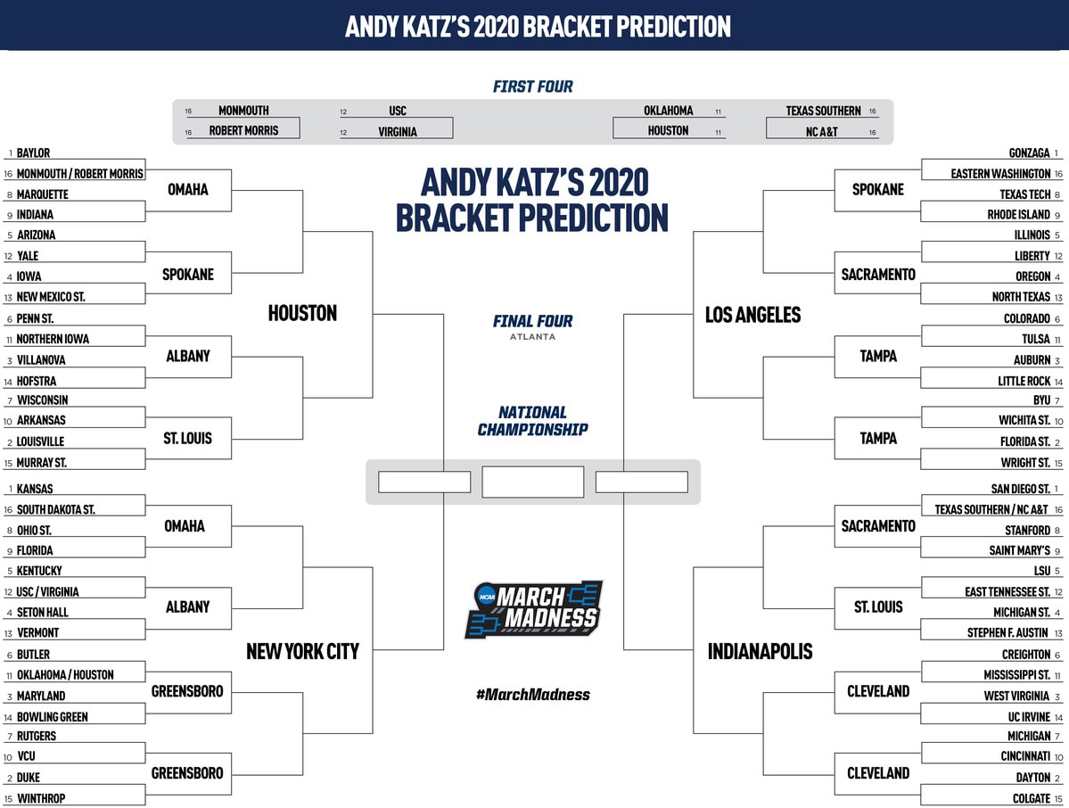 The 2020 NCAA bracket, predicted by Andy Katz on Feb. 3