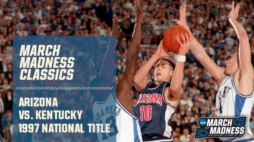 What happened: Kentucky came into 1997 looking to repeat as champions, and defeated Minnesota 78-69 to get to the championship game. Arizona, the only team that wasn’t a No. 1 seed, defeated No. 1 UNC with Vince Carter and Antawn Jamison to get to the championship game, behind 24 points from Miles Simon and 20 points from Mike Bibby. In the championship game, Arizona defeated Kentucky 84-79 in the sixth of eight overtime games in the history of the tournament. Simon scored 30 points and was voted Most Outstanding Player. The Wildcats defeated three No. 1 seeds in the tournament.