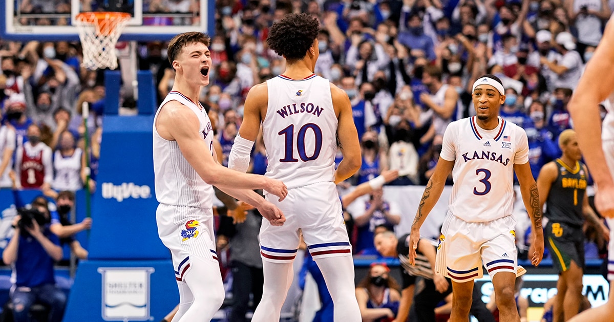 This Saturday, Kansas avoided a second consecutive home loss with an 83-59 win over No. 8 Baylor. It was the Jayhawks' second straight double-digit home win over the Bears. Kansas' defense held Baylor to just under 30-percent shooting from the field and the Jayhawks forced 14 turnovers by the Bears. Ochai Agbaji and Christian Braun each scored 18 points to pace Kansas, which is now 8-1 in the Big 12, while Baylor dropped to 7-3.