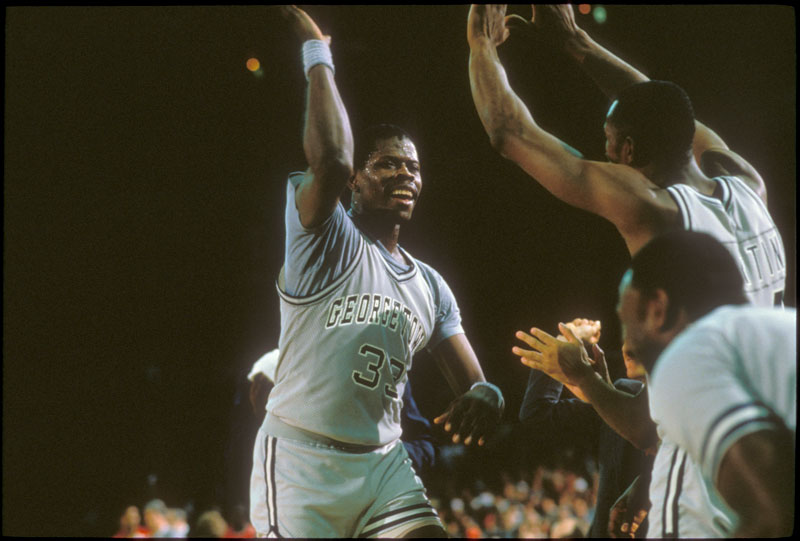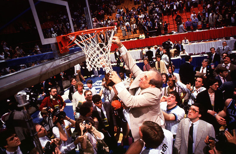 Rollie Massimino cuts the nets after Villanova, the only 8-seed ever to win in a 64-team tournament, shocked Georgetown.