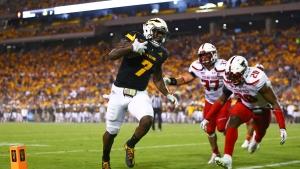 ASU's RB Kalen Ballage (7) tied Howard Griffith (Illinois, 1990) for the NCAA single-game TD record.