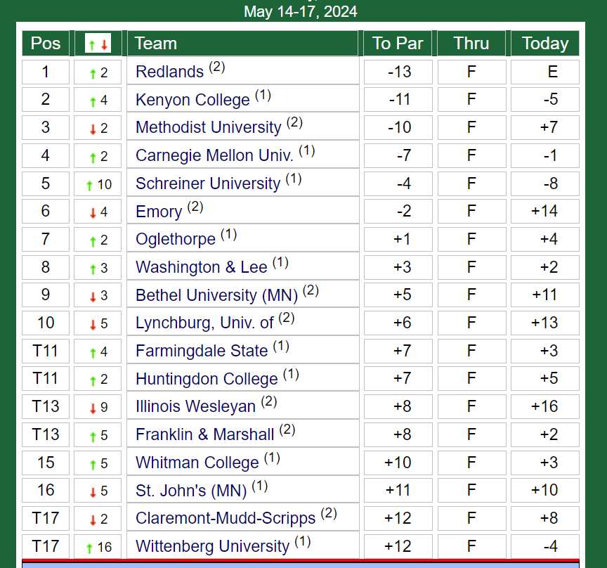 The 2024 NCAA DIII men's golf championships began with the selections on Monday, May 6, released here on vipkrikya888.com. Championship finals came to a close on Friday, May 17 at Boulder Creek Golf Club in Boulder City, Nevada.