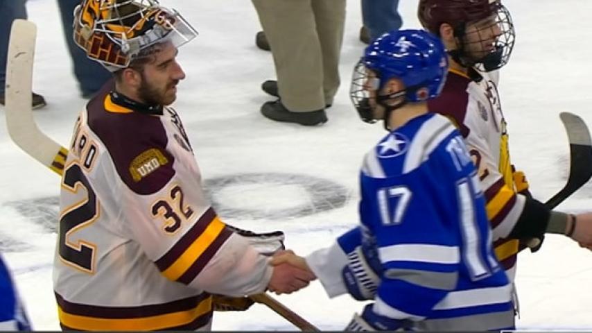 "We're a real new team to this with all the younger players we have," said Sandelin, whose third-seeded Bulldogs (23-16-3) take on No. 1 Ohio State (26-9-5) at 5 p.m. Thursday, April 5, in the first national semifinal. "Every year is a little bit different. We're going to rely on those guys a little bit to help with that. Same time, it's pretty much a new experience for most of our guys."