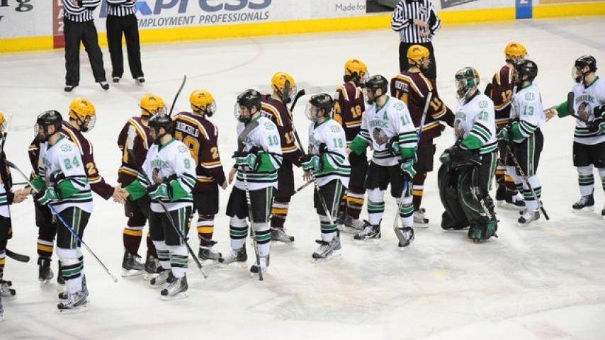 These two rivals have met over 300 times, too, but last season marked the first meeting since 2014. When the Western Collegiate Hockey Association split up in the fall of 2013, it ended a run of 66 consecutive years of regular season meetings between the border rivals. Of course, the rivalry couldn't die that easily, and the squads met in the 2014 Frozen Four when Minnesota won 2-1 (the Golden Gophers scored with 0.6 seconds left to earn a spot in the championship). Together, the rivals are impressive on the ice, combining for 13 national titles and 12 national championship appearances.