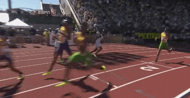 While Texas A&M was trying to handle its handoff issues, the rest of the field continued the race. The runners merged on the backstretch and Florida, despite handoff issues of its own, ran from lane five to lane one to take the lead.
