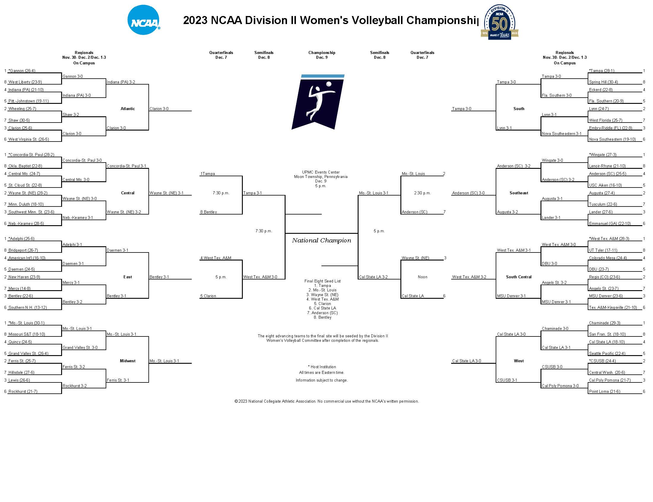 BRACKET: Click or tap here for the 2023 DII women's volleyball bracket | Printable bracket