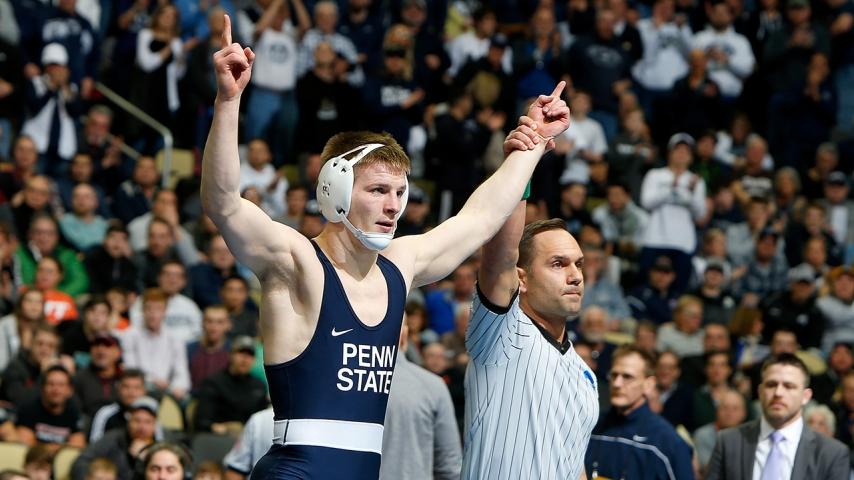 For the second year in a row, Penn State’s Mark Hall and Arizona State’s Zahid Valencia will face off in the 174-pound finals. Hall won the tournament in 2017, while Valencia took third, but the Arizona State grappler found his way to the top of the podium last year with a win over Hall in the finals. They’ll face again Saturday night, but both will leave PPG Paints Arena as three-time All-Americans. Hall and Valencia top an experienced crew that includes four-time All-American Daniel Lewis of Missouri, three-time All-Americans David McFadden and Myles Amine and two-timer Jordan Kutler. Mikey Labriola and Devin Skatzka earned their first honors with their podium finishes. Kutler took down Skatzka to finish seventh, and Michigan’s Amine took third with his victory over Lewis. McFadden, in a short time effort, took home fifth-place honors while Labriola finished sixth.